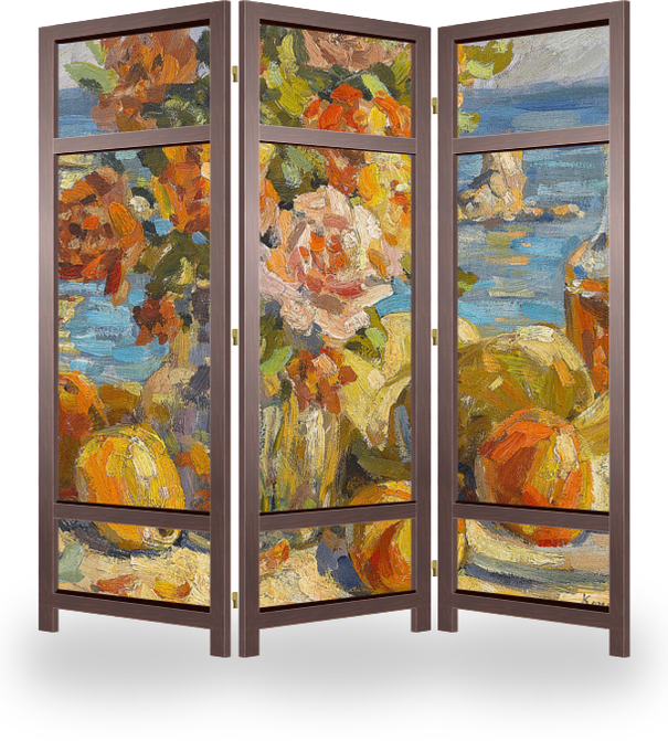 Ширма эконом отлично подойдет для временного размещения, рекламы, для отгораживания объектов интерьера и его дополнения. Лицевая сторона с изображением, обратная сторона открытый каркас