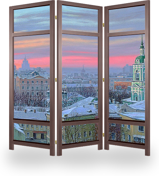 Ширма эконом отлично подойдет для временного размещения, рекламы, для отгораживания объектов интерьера и его дополнения. Лицевая сторона с изображением, обратная сторона открытый каркас