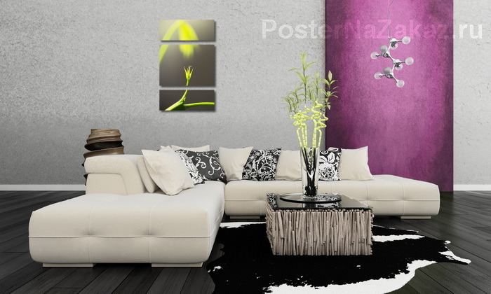 Описание ширмы Зеленый росток на сером фоне на фоне большого растения