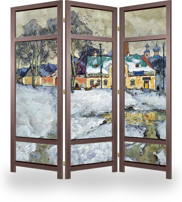 Ширма эконом отлично подойдет для временного размещения, рекламы, для отгораживания объектов интерьера и его дополнения. Лицевая сторона с изображением, обратная сторона открытый каркас