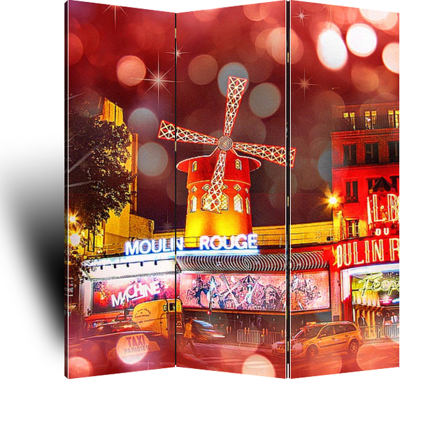 Описание ширмы Кабаре Мулен Руж открылось 6 октября 1889 года. Название кабаре дала деревянная мельница с крыльями красного цвета, созданная декоратором Леоном-Адольфом Вилеттом. Красный цвет крыльев явно намекал на район красных фонарей. В «Мулен Руж» собирались