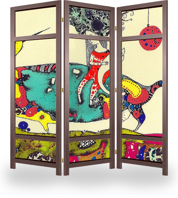 Ширма эконом отлично подойдет для временного размещения, рекламы, для отгораживания объектов интерьера и его дополнения. Лицевая сторона с изображением, обратная сторона открытый каркас