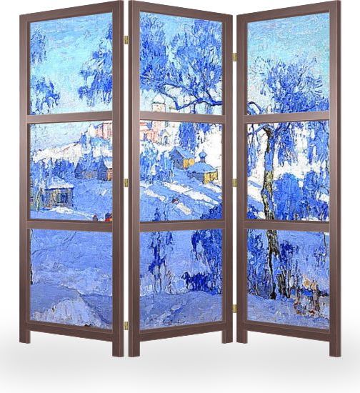 Ширма эконом отлично подойдет для временного размещения, рекламы, для отгораживания объектов интерьера и его дополнения. Лицевая сторона с изображением, обратная сторона открытый каркас
