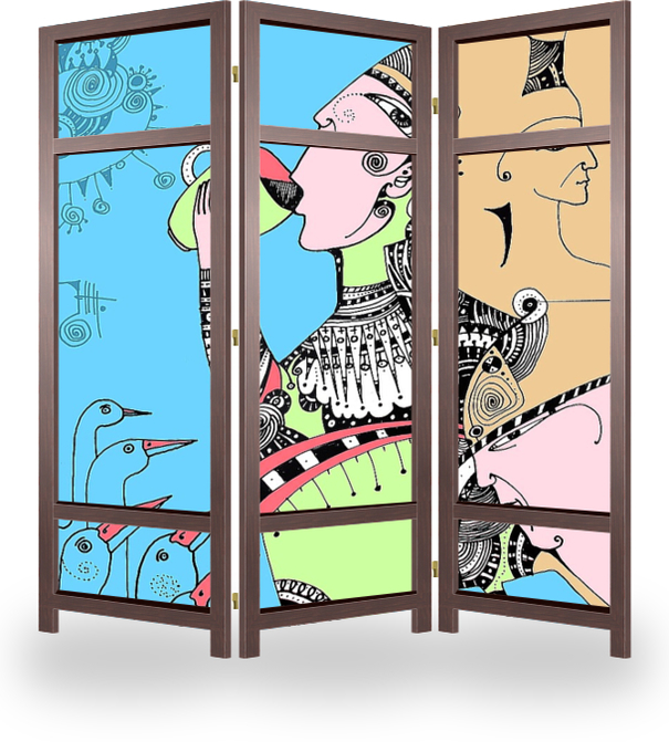 Ширма эконом отлично подойдет для временного размещения, рекламы, для отгораживания объектов интерьера и его дополнения. Лицевая сторона с изображением, обратная сторона открытый каркас