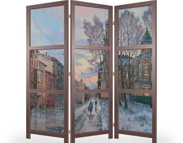 Ширма эконом отлично подойдет для временного размещения, рекламы, для отгораживания объектов интерьера и его дополнения. Лицевая сторона с изображением, обратная сторона открытый каркас