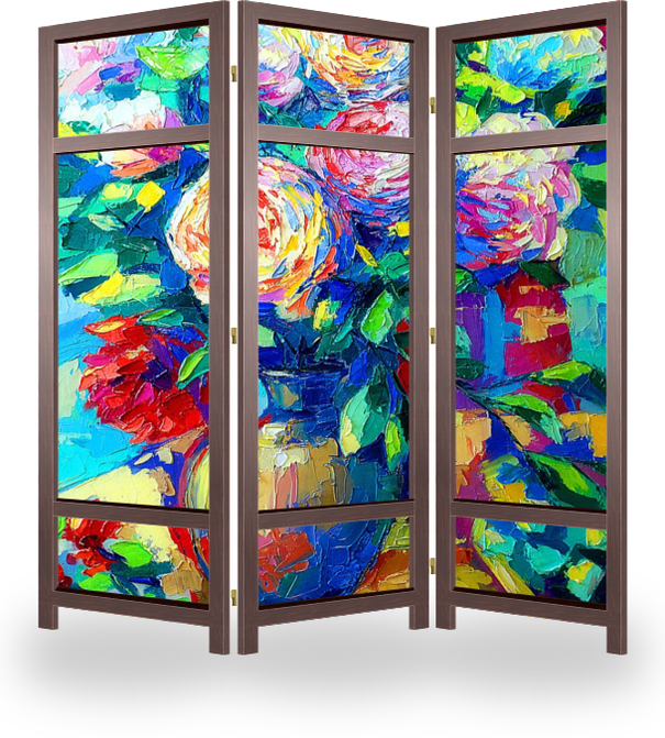 Ширма эконом отлично подойдет для временного размещения, рекламы, для отгораживания объектов интерьера и его дополнения. Лицевая сторона с изображением, обратная сторона открытый каркас