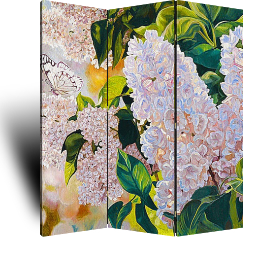 Описание ширмы Картина для зала. В городскую квартиру, где так к стати будет кусочек природы, подобно открытому окну в сиреневый сад.