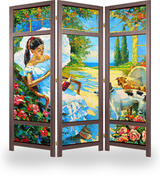 Ширма эконом отлично подойдет для временного размещения, рекламы, для отгораживания объектов интерьера и его дополнения. Лицевая сторона с изображением, обратная сторона открытый каркас