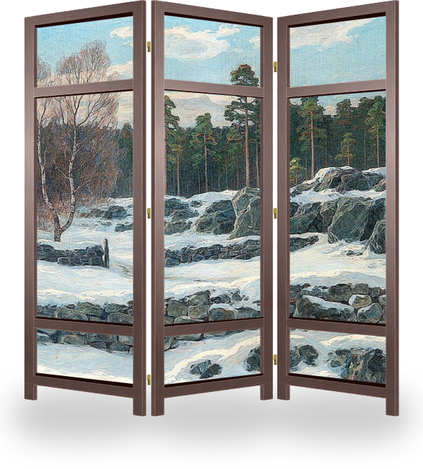 Ширма эконом отлично подойдет для временного размещения, рекламы, для отгораживания объектов интерьера и его дополнения. Лицевая сторона с изображением, обратная сторона открытый каркас