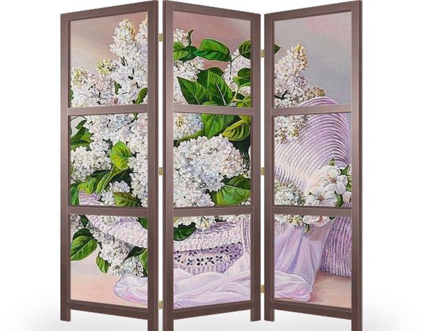 Описание ширмы современный белый натюрморт, прекрасно впишется в светлый интерьер современных квартир, картина предназначена для белой спальни или большой светлой кухни.