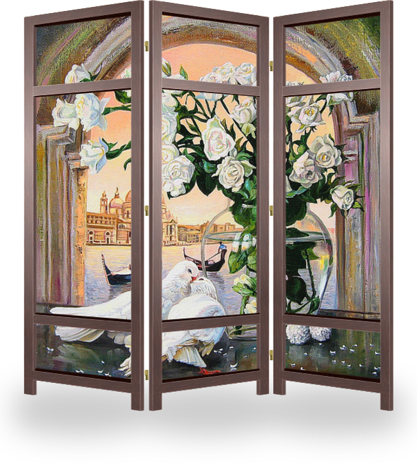 Описание ширмы Достойный стильный натюрморт предназначен для любителя венецианских мотивов, хорошо будет смотреться над камином в гостиной, картина для большой кухни, для частного дома.