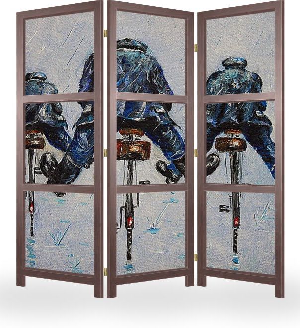 Описание ширмы холст, масло Соревнование рабочих парней на велосипедах, Юмористическая картинка и пародия на всемирно известные соревнованияTour de France К финишу придет самый ловкий!