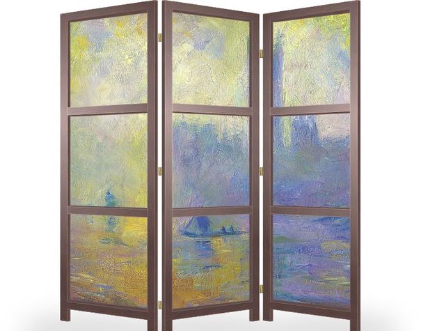 Описание ширмы авторская копия морского пейзажа французского импрессиониста Клода Моне, великолепная передача света и тени,мастерское владение колористической палитрой в изображении водной стихии и тумана застилающего Темзу.