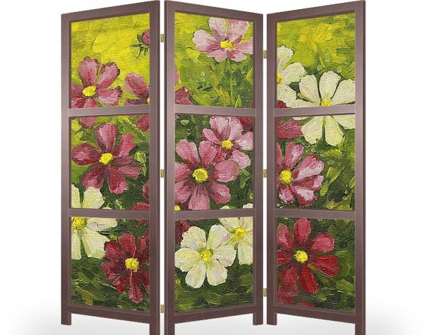 Описание ширмы Картина написана маслом на холсте. Размер 60х50. На картине изображены садовые цветы в летний день. Работа написана с натуры. Цветы расположены хаотично. Работа передает ощущение теплого летнего дня.