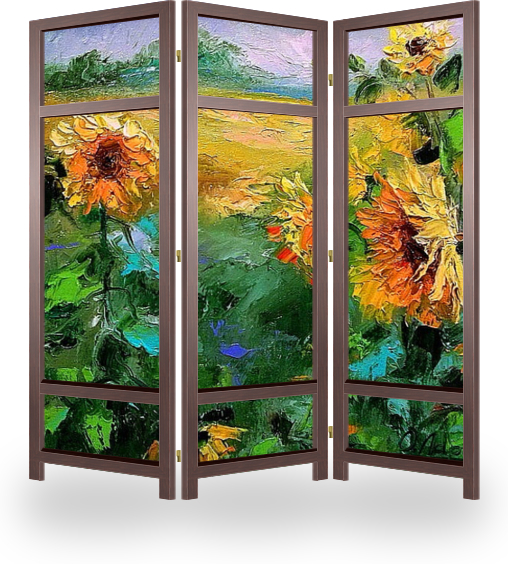 Описание ширмы Картина маслом на холсте,красивая картина маслом,картина маслом для интерьера,картина Ольги Дарчук,живописная картина,подсолнухи,поле,лето,небо,красота