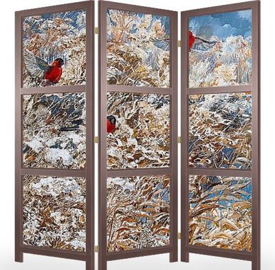 Описание ширмы Картина написана маслом на холсте. Работа создана под впечатлением от замечательной уральской зимней красоты. Картина украсит любой современный интерьер. Наполнит уютом загородный интерьер.