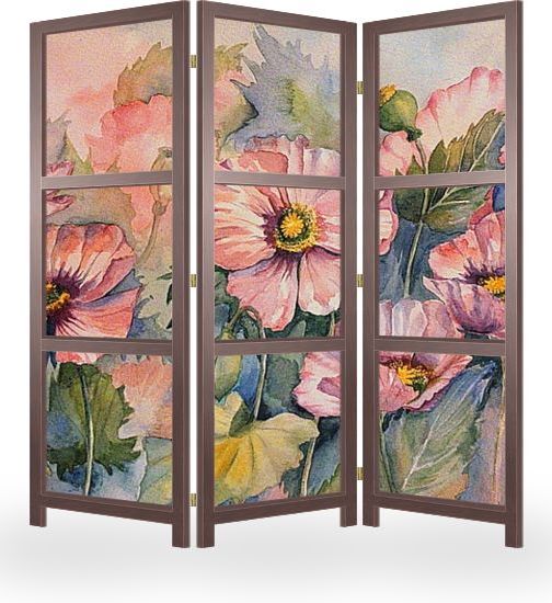 Описание ширмы Картина была написана в 2013 году как желание передать своё умиротворённое, весеннее настроение. Маки- любимый цветок автора. Декоративные маки бывают разных цветов,от белого,до фиолетового.