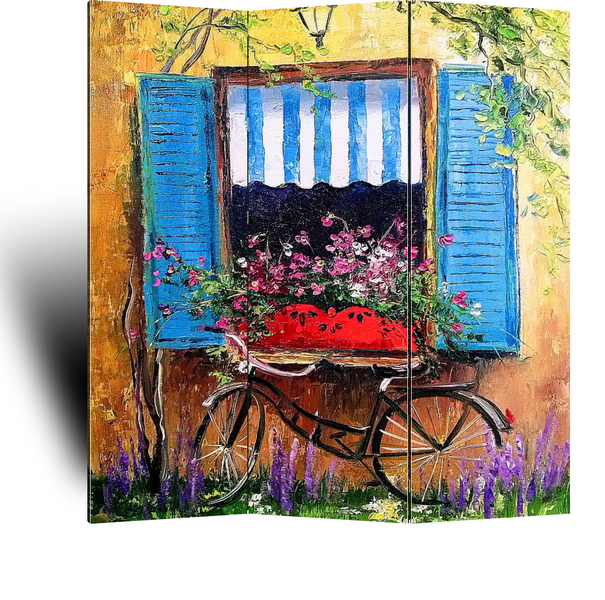 Описание ширмы Картина маслом на холсте,красивая картина маслом,живописная картина,картина для интерьера,картина маслом на подарок,лето,дача,окошко,велосипед,цветы,картина Ольги Дарчук