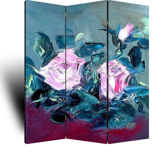 Описание ширмы Картина написана в пастозной манере. В холодной лилово-зеленой гамме. Навеяна впечатлениями от свежих, распустившихся в саду, роз. Розы всегда украсят Ваш интерьер.