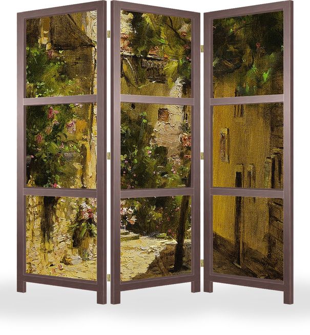 Описание ширмы Путешествуя по Италии меня всегда привлекают маленькие, тесные улочки в старых городках. Тепло каменных стен, мостовых, цветов на балконах, южное солнце оставляет неизгладимое впечатление этих мест.
