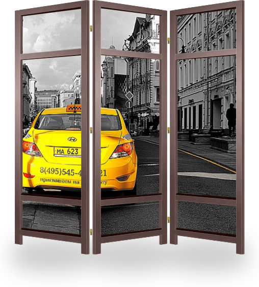Описание ширмы Фотография была сделана неподалёку от метро "Кузнецкий мост"на мгновение выглянуло солнце,такси оказалось забрызгано лучами, в то время как сама улица в тени