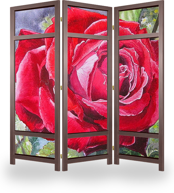 Описание ширмы Обожаю розы.У меня много разных розовых кустов растет,история есть у каждого,почти все подарены мне моими дорогими родными и друзьями.Очень хотелось поделиться радостью цветения царицы цветов с вами,написала в июне 2014 эту акварель.