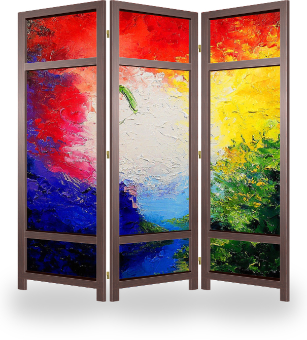 Ширма эконом отлично подойдет для временного размещения, рекламы, для отгораживания объектов интерьера и его дополнения. Лицевая сторона с изображением, обратная сторона открытый каркас