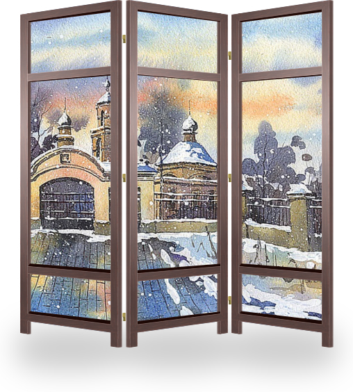 Ширма эконом отлично подойдет для временного размещения, рекламы, для отгораживания объектов интерьера и его дополнения. Лицевая сторона с изображением, обратная сторона открытый каркас