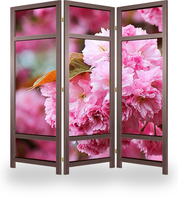Описание ширмы Вишнёвое дерево. Ещё прохладны дни и ночи, но деревья уже украсили себя нежнейшими розовыми лепестками. Кажется, что ты попал в Японию во время празника сакуры и вот, через пару секунд, из-за деревьев появится парочка гейш в красивых кимоно...