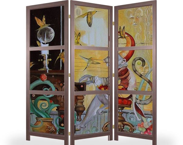 Описание ширмы 50х50 см. Холст, масло. 2011 г Картина необычная. Вызывает своеобразное настроение: смешение задумчивости, вдохновения. Подталкивает к размышлениям и полету фантазии.
