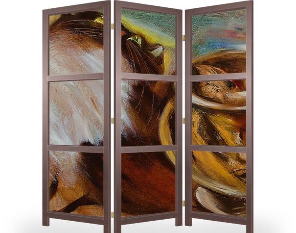 Описание ширмы Картина "Соблазн" - хитрый и наглый кот, который вот-вот поддастся соблазну. Животные придают комнате уют и создают приятную атмосферу. Картина поможет Вам разнообразить интерьер и привлечь внимание гостей.