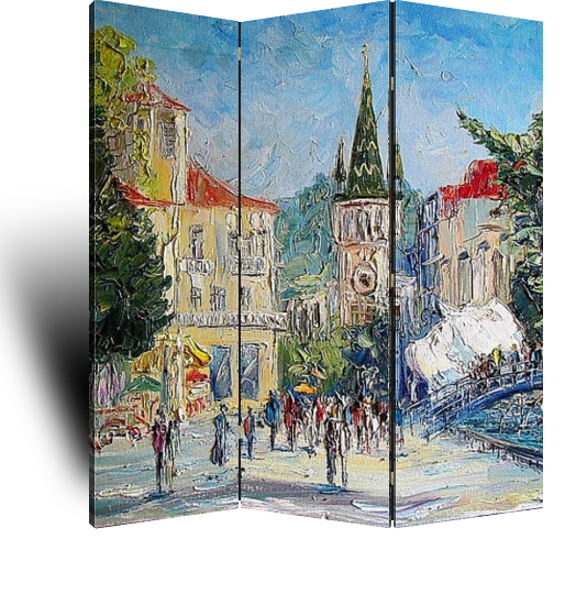 Ширма эконом отлично подойдет для временного размещения, рекламы, для отгораживания объектов интерьера и его дополнения. Лицевая сторона с изображением, обратная сторона открытый каркас