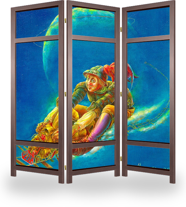 Ширма эконом отлично подойдет для временного размещения, рекламы, для отгораживания объектов интерьера и его дополнения. Лицевая сторона с изображением, обратная сторона открытый каркас