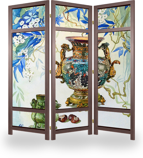 Описание ширмы Акварельная картина на основе китайского антиквариата с китайской живописью создает уникальный образ красоты бронзовой вазы древней эпохи китайского искусства