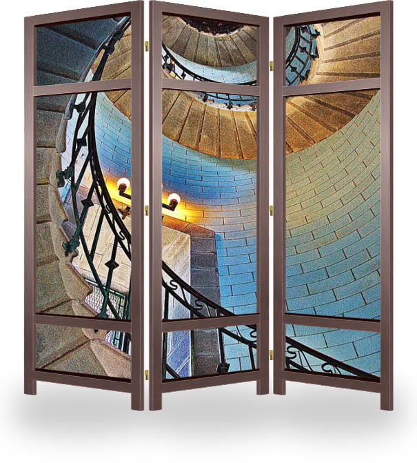 Описание ширмы Музыка линий... или Лестница в небо - то и другое приемлемо для данного места. Лестница маяка Экмюль, Бретань, Франция. 60 метров, 307 ступенек...вверх и вниз...