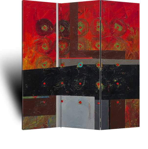 Описание ширмы Работа создана в 2014. Техника: холст, масло Техника: холст, масло. Размеры оригинала: 85 x 85см. в данной композиции яркие пятна и текстуры сочетаются с четкими геометрическими формами.