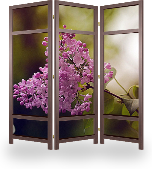 Описание ширмы Снимок сделан в одном из московских парков в середине мая. Сирень - роскошный кустарник, чрезвычайно выносливый, который отлично растёт на открытом воздухе как на юге, так и на севере Европы и украшает весной сады крупными соцветиями своих душистых ц