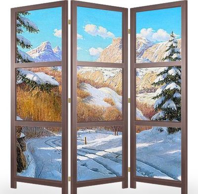 Ширма эконом отлично подойдет для временного размещения, рекламы, для отгораживания объектов интерьера и его дополнения. Лицевая сторона с изображением, обратная сторона открытый каркас