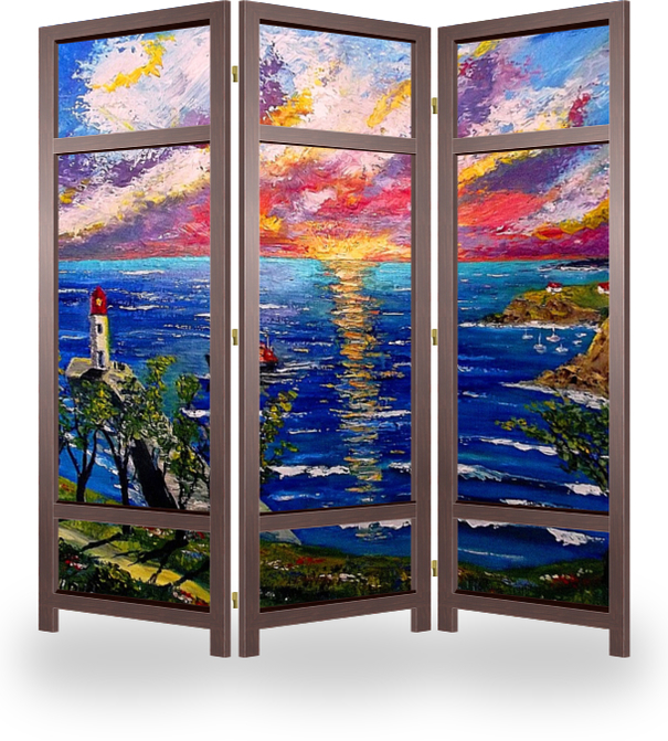 Ширма эконом отлично подойдет для временного размещения, рекламы, для отгораживания объектов интерьера и его дополнения. Лицевая сторона с изображением, обратная сторона открытый каркас