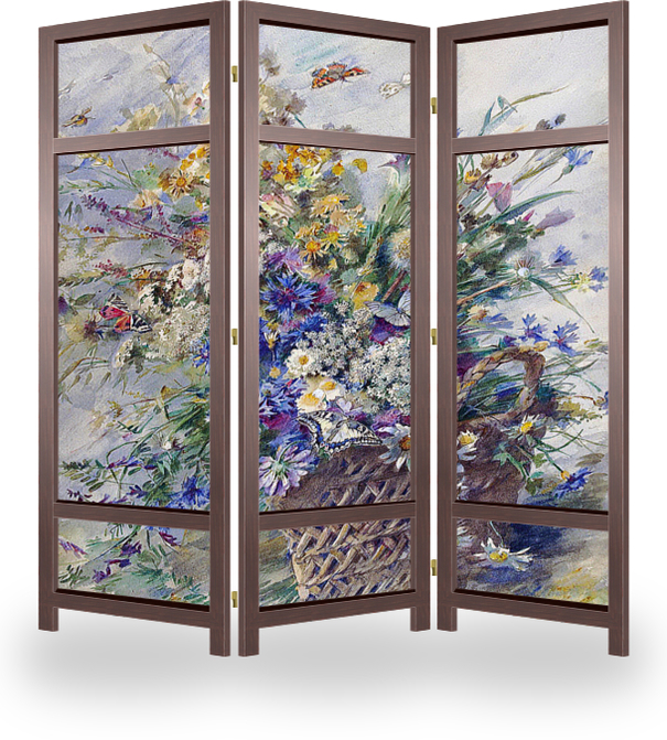 Ширма "Корзина с полевыми цветами и две бабочки"