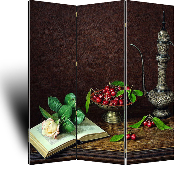 Описание ширмы натюрморт для украшения гостиной, столовой, загородного дома.
