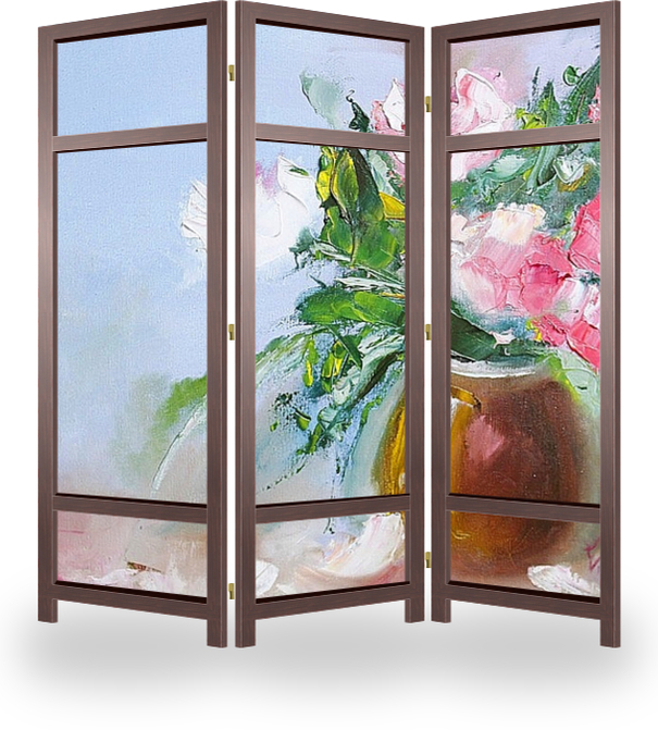 Ширма эконом отлично подойдет для временного размещения, рекламы, для отгораживания объектов интерьера и его дополнения. Лицевая сторона с изображением, обратная сторона открытый каркас