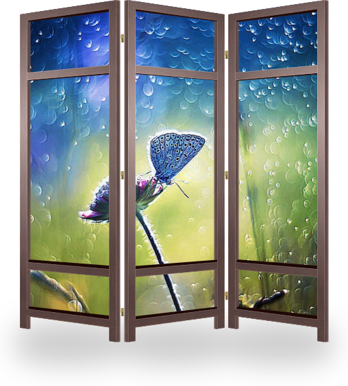 Ширма эконом отлично подойдет для временного размещения, рекламы, для отгораживания объектов интерьера и его дополнения. Лицевая сторона с изображением, обратная сторона открытый каркас