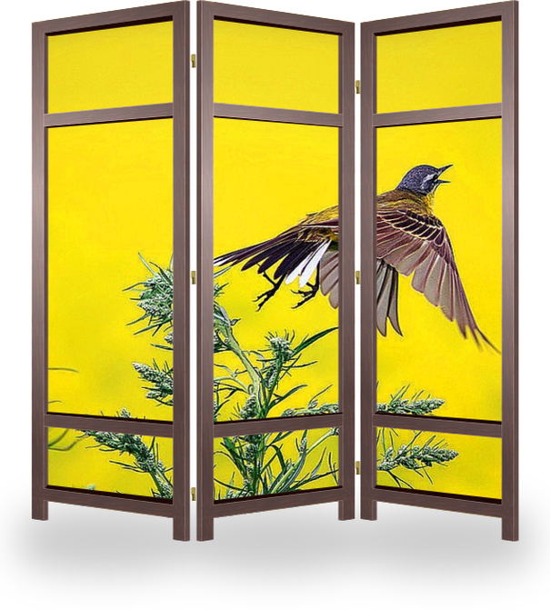 Описание ширмы в июне начинают цвести луга и поля. особенно солнечно выглядят рапсовые поля. их цвет заряжает энергией и дарит позитивное настроение. эти поля посещают многие птицы. особенно гармонично смотрятся желтые трясогузки