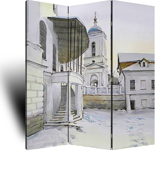 Ширма эконом отлично подойдет для временного размещения, рекламы, для отгораживания объектов интерьера и его дополнения. Лицевая сторона с изображением, обратная сторона открытый каркас