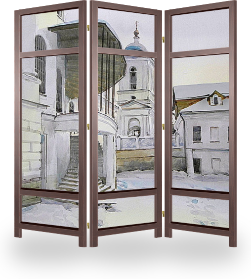 Ширма эконом отлично подойдет для временного размещения, рекламы, для отгораживания объектов интерьера и его дополнения. Лицевая сторона с изображением, обратная сторона открытый каркас