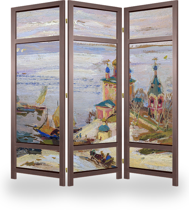 Ширма эконом отлично подойдет для временного размещения, рекламы, для отгораживания объектов интерьера и его дополнения. Лицевая сторона с изображением, обратная сторона открытый каркас