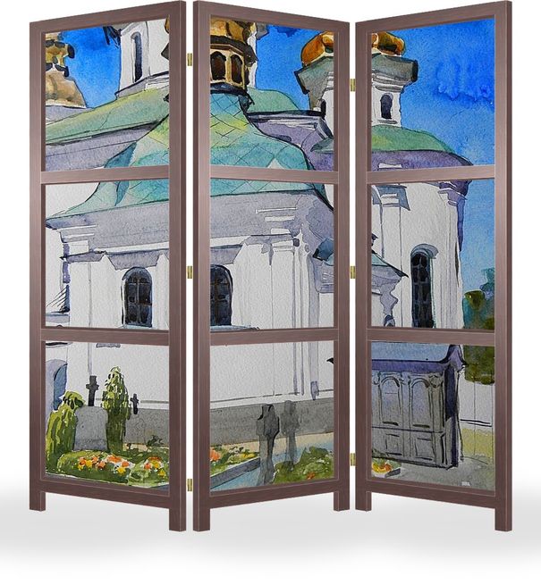 Ширма эконом отлично подойдет для временного размещения, рекламы, для отгораживания объектов интерьера и его дополнения. Лицевая сторона с изображением, обратная сторона открытый каркас