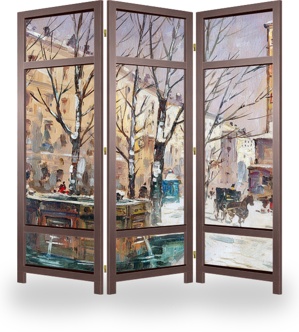 Ширма эконом отлично подойдет для временного размещения, рекламы, для отгораживания объектов интерьера и его дополнения. Лицевая сторона с изображением, обратная сторона открытый каркас