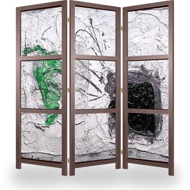 Описание ширмы абстракция на панели с использованием пластика и эмали, лессированная акриловыми красками с последующей обработкой морилкой и битумным лаком, условно-символический натюрморт